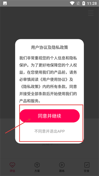 1、进入应用后会弹出【用户协议及隐私政策】弹窗,点击同意即可进入应用主界面。