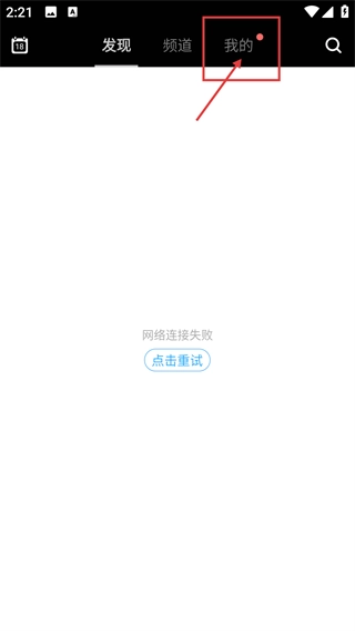 1、在应用界面点击顶部的【我的】选项,要是碰到网络连接失败的情况,可以点击【点击重试】来恢复网络,之后就能进入个人中心页面了。