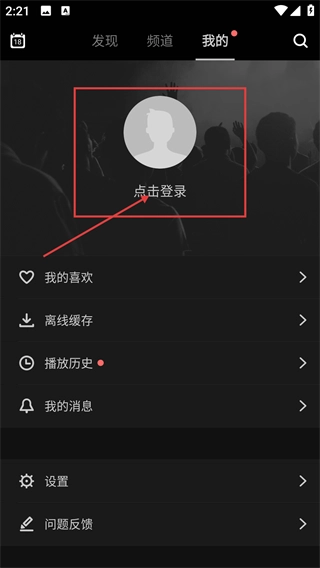 进入个人中心后,点击【点击登录】按钮就能进入登录页面,此页面还设有【我的喜欢】【离线缓存】等功能的入口。