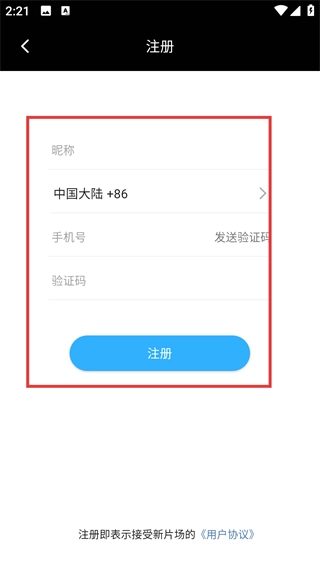 4、进入注册页面后,需要填写【昵称】和【手机号】,接着获取并输入【验证码】,完成这些操作后点击【注册】按钮,就能成功创建账号了。