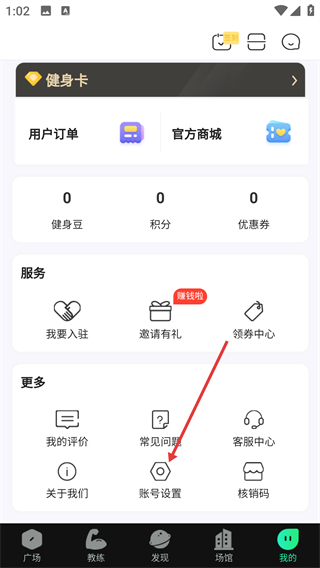 2、在个人中心页面,找到并点击【账号设置】选项,进入应用的设置界面。