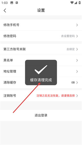 4、等待系统完成缓存清理,页面会显示“缓存清理完成”的提示,缓存数据将被释放。