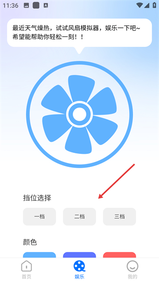 1、点击【娱乐】选项,进入风扇模拟器界面。