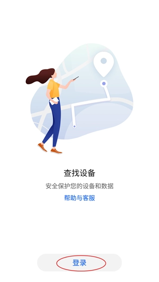 2、点击底部【登录】按钮,即可进入账号登录流程,该应用核心用于设备安全定位与数据保护。