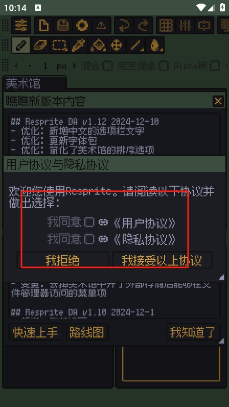 1、极致的移动优化:Resprite 专为移动设备优化,支持触控笔操作,让创作过程更自然、手感更舒适,适配移动端使用场景。