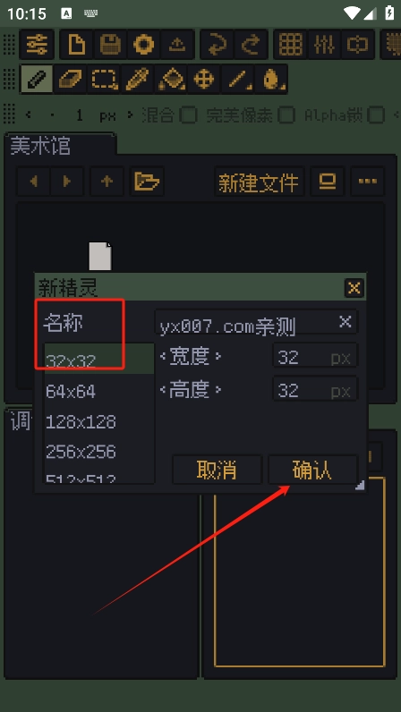 4、点击确认后,软件会自动跳转至刚创建的图层界面,此时可开始进行像素画创作。