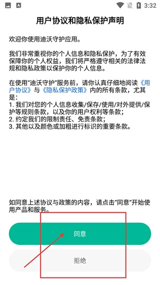 1、在【用户协议和隐私保护声明】页面,点击【同意】按钮,确认接受相关协议后即可进入后续流程。
