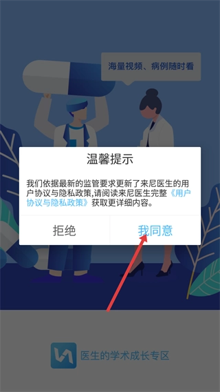 当遇到【来尼医生-】推送的【用户协议与隐私政策】更新提示时,请先仔细阅读依据最新监管要求进行调整的相关内容,之后再选择对应的操作选项。
