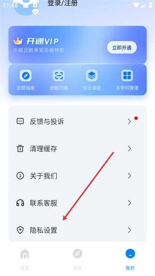 2、进入个人中心页面后,点击【隐私设置】选项,即可进入隐私设置页面。