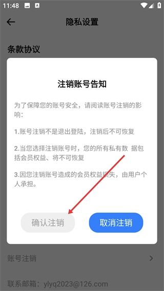 4、仔细阅读注销账号告知内容后,点击【确认注销】按钮,即可完成账号注销流程。