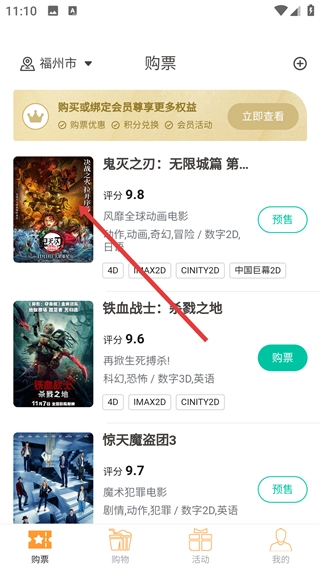 2、借助购票功能,用户能够迅速买到自己想看的电影票,体验到便捷的服务。