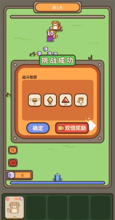 策略对战包含两种模式:一种是自动对战,玩家培养的动物会自动和紫色怪物等敌人交战,获胜后能领取道具、资源之类的奖励,看广告还能拿到双倍奖励;另一种是需要手动规划策略的3D战场对战。在对战过程中,生物技能可以触发连锁效果,比如“毒雾扩散”和“风系技能”组合起来能造成大范围的持续伤害,玩家还得依据地形来调整生物的站位,利用环境互动来改变战局走向。