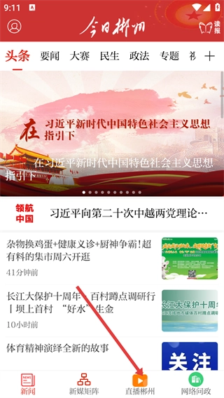 2、打开进入【新闻】页面后,点击【直播郴州】,进入直播专栏。