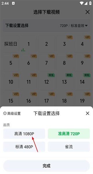 完成画质设置后,选择第1集就能开始观看该集内容,界面上会显示多集可供选择,其中部分集数标注了VIP标识。