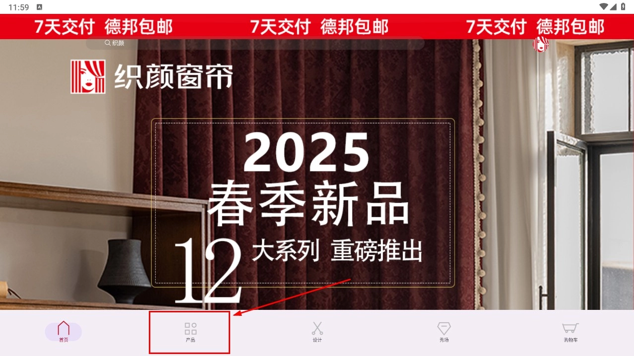 1、点击底部的【产品】按钮,进入织颜窗帘的产品板块,即可查看2025春季新品等系列产品。