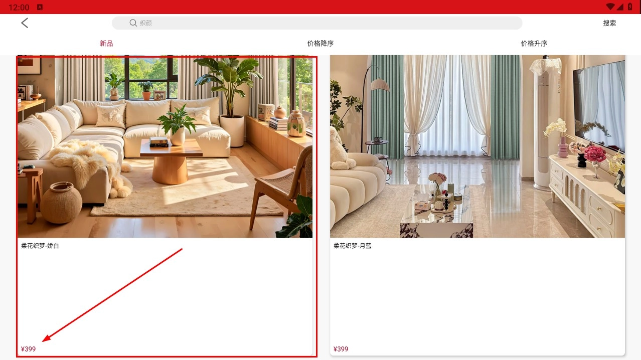 3、点击你感兴趣的窗帘款式,比如“柔花织梦”系列,就能进入对应的详情页面。