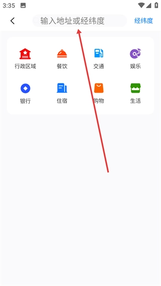 1、点击【搜索】按钮,进入地址或经纬度输入页面。
