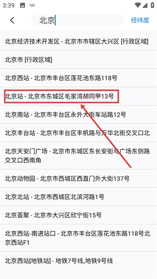 3、在搜索结果中选择目标地点,如“北京西站-北京市丰台区莲花池东路118号”。