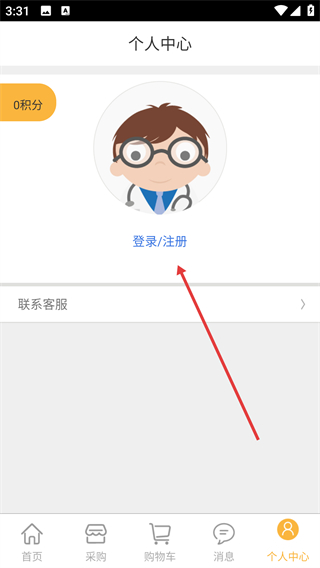 1、进入个人中心页面后,点击【登录/注册】按钮,即可跳转至微药登录界面。