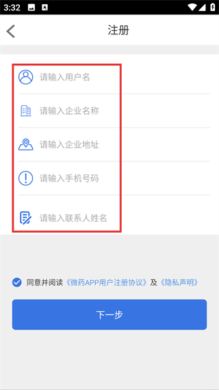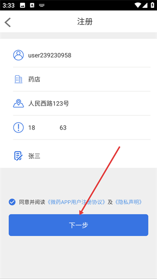 4、勾选同意相关协议后,点击【下一步】按钮,即可完成注册信息的提交操作。