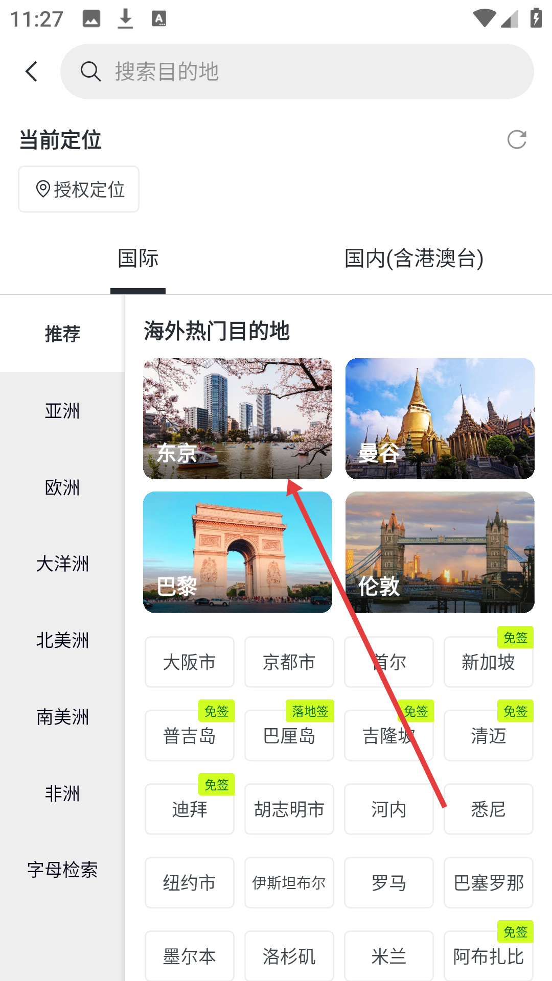2、在酒店搜索界面输入目的地,例如【东京】,接着选定入住与退房的日期。