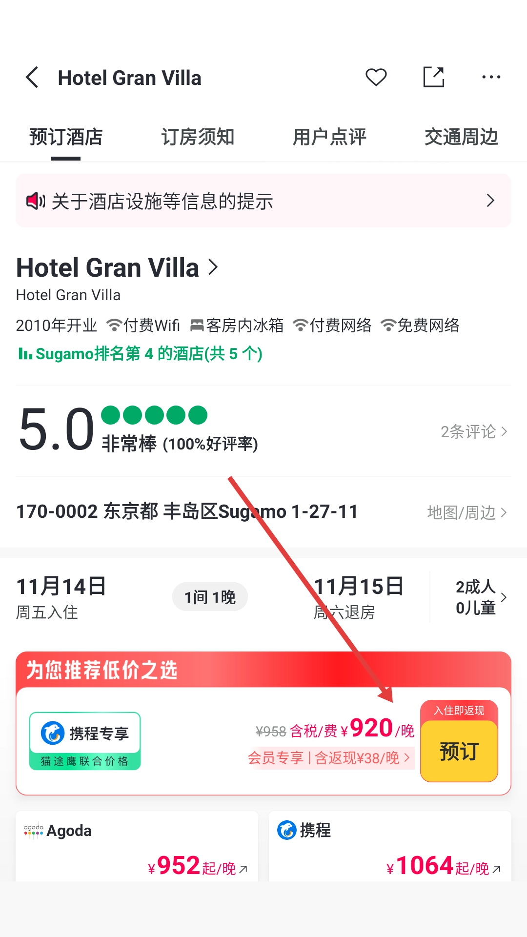 4、在酒店详情页面点击【预订】按钮,完成酒店预订的相关操作。