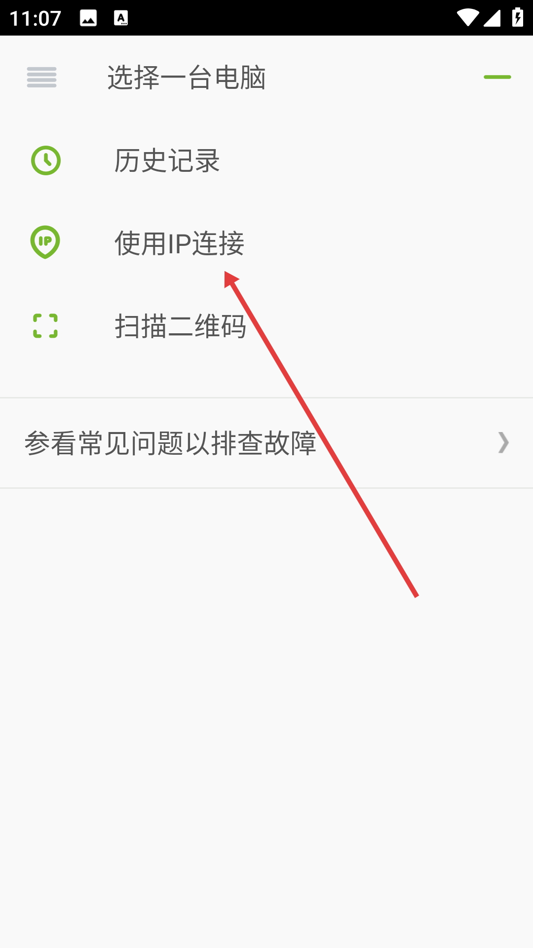 2、在连接方式列表里找到并点击【使用IP连接】选项,随后进入IP地址输入页面。