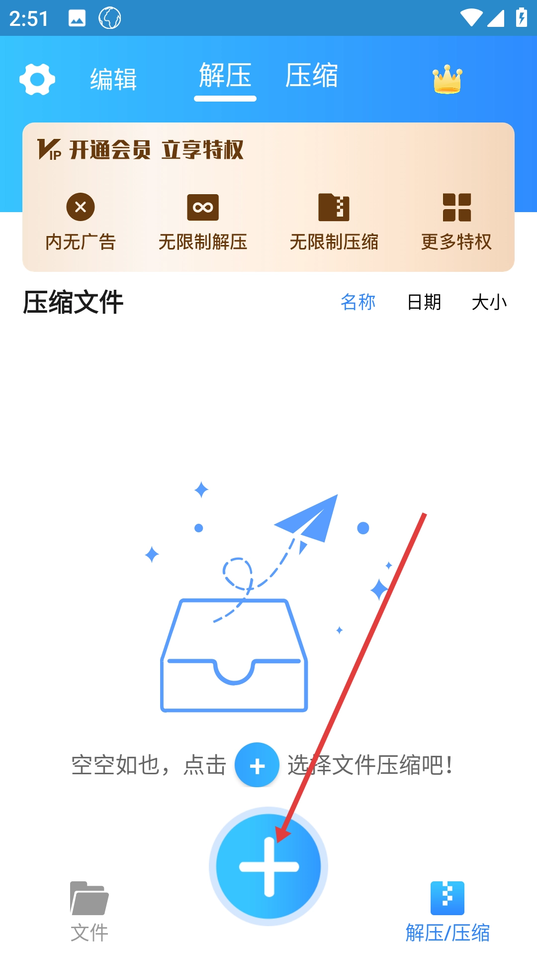 1、点击页面底部的【+】按钮,即可进入文件压缩的选择页面。