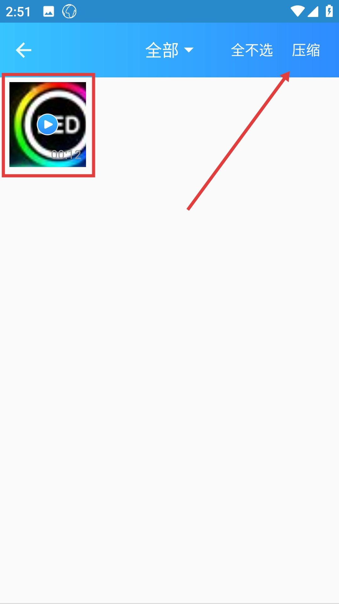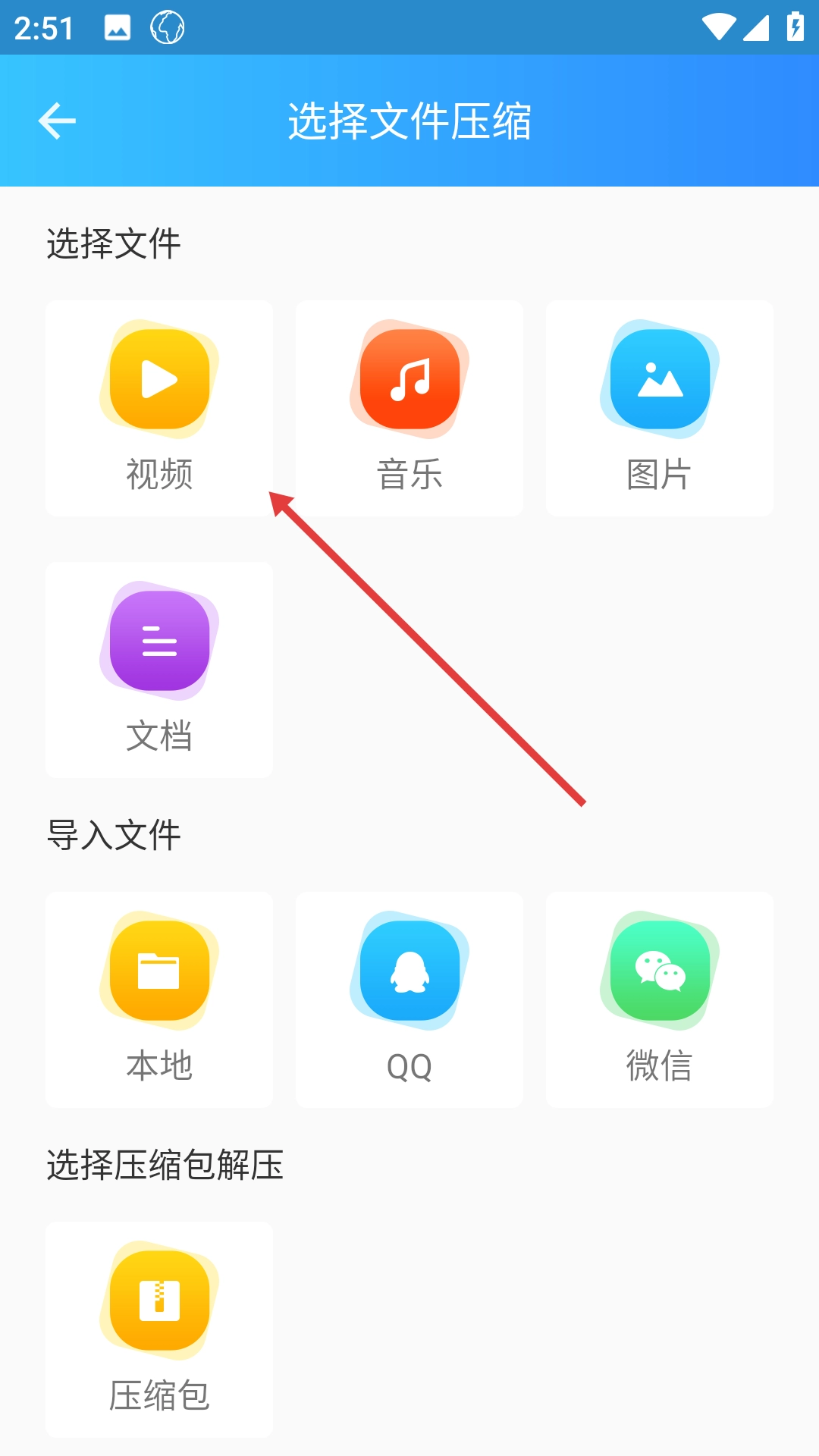 2、在文件压缩选择页面,挑选需要压缩的文件类型,例如【视频】。