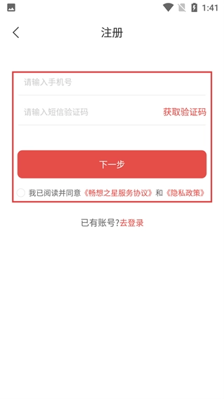 1、在【畅想之星】登录页,可选择【立即注册】进入注册流程,也可通过【手机号/用户名】+密码或【微信】。