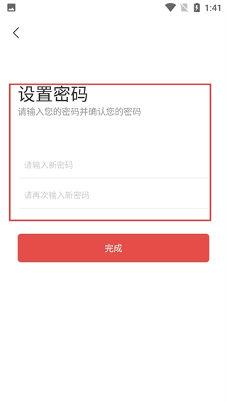 3、完成验证后进入【设置密码】页,需输入新密码并再次确认,填写完成后点击【完成】即可完成账号注册。