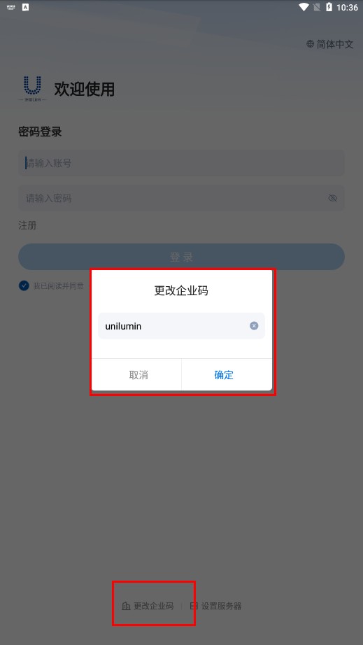 3、点击【更改企业码-功能按钮】,在弹出的窗口中可修改企业码,点击【确定-功能按钮】保存。