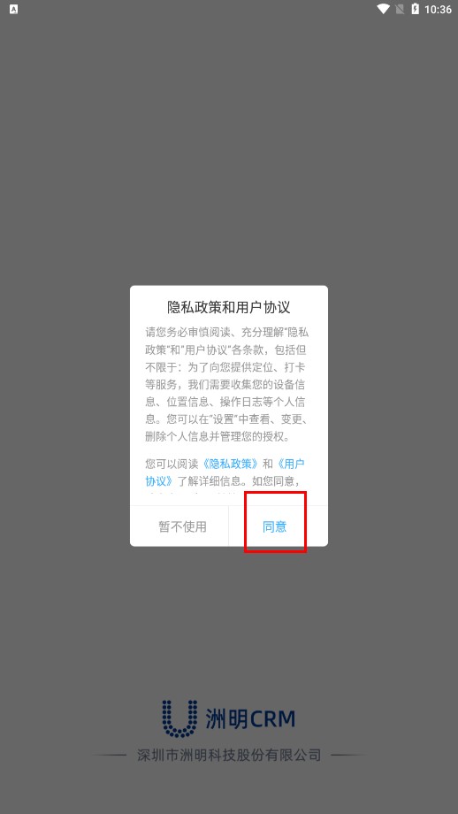 1、点击【同意-功能按钮】,同意隐私政策和用户协议。