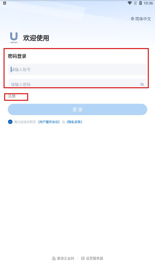 2、进入登录页面后,可在【密码登录-区域】输入账号密码登录,或点击【注册-功能按钮】注册账号。