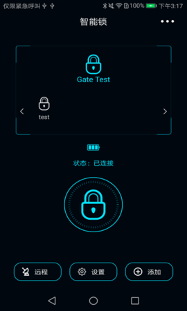 在智能锁主界面,点击【远程】按钮后,即可进入远程开锁的选择界面。