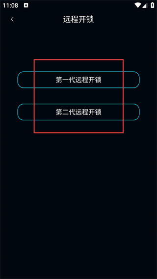 2、进入远程开锁选择界面后,可选择【第一代远程开锁】或【第二代远程开锁】,从而进入对应的远程开锁界面。