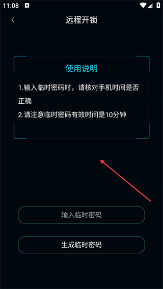 3、使用第一代远程开锁界面时,输入临时密码前要留意核对手机时间,同时临时密码的有效时长为10分钟。
