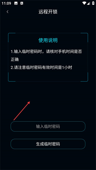 4、使用第二代远程开锁界面时,输入临时密码前要留意核对手机时间,并且临时密码的有效时长为1小时。