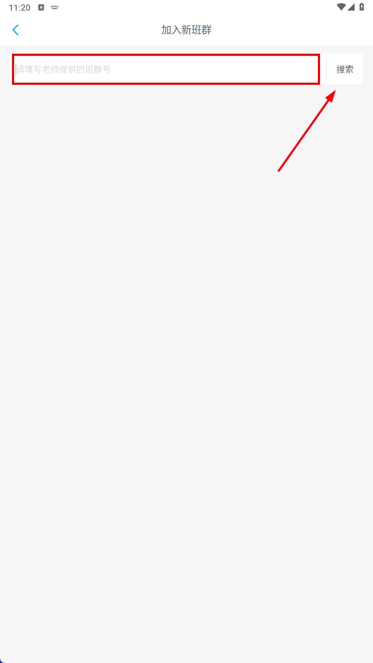 4、在输入框中填入老师给出的班群号,点击【搜索】功能按钮,即可加入相应的班群。