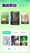2画板素材专区整合了近期热门推荐、高人气背景资源以及精心筛选的特色背景等实用板块。