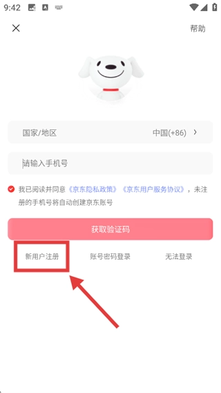 3、在登录注册界面,点击【新用户注册】选项,进入手机快速注册页面。