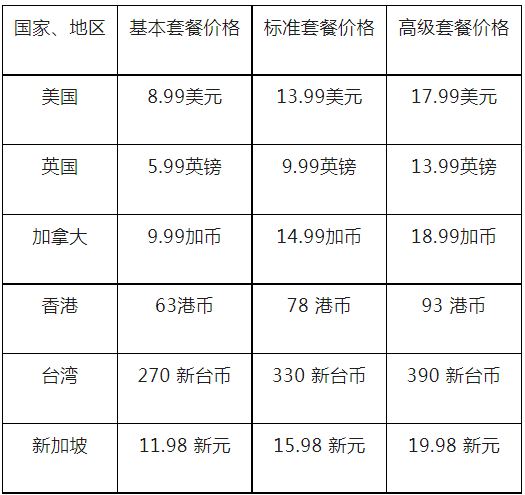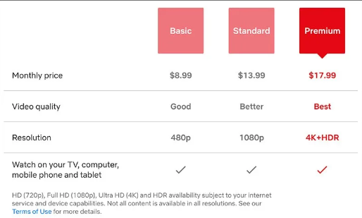 标准套餐(Standard):支持1080p高清视频播放,同时观看的设备数量最多为两台。