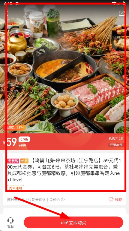 4在大牌专区代金券的详情页面,找到底部的“立即购买”按钮并点击,就能完成该代金券的抢购。
