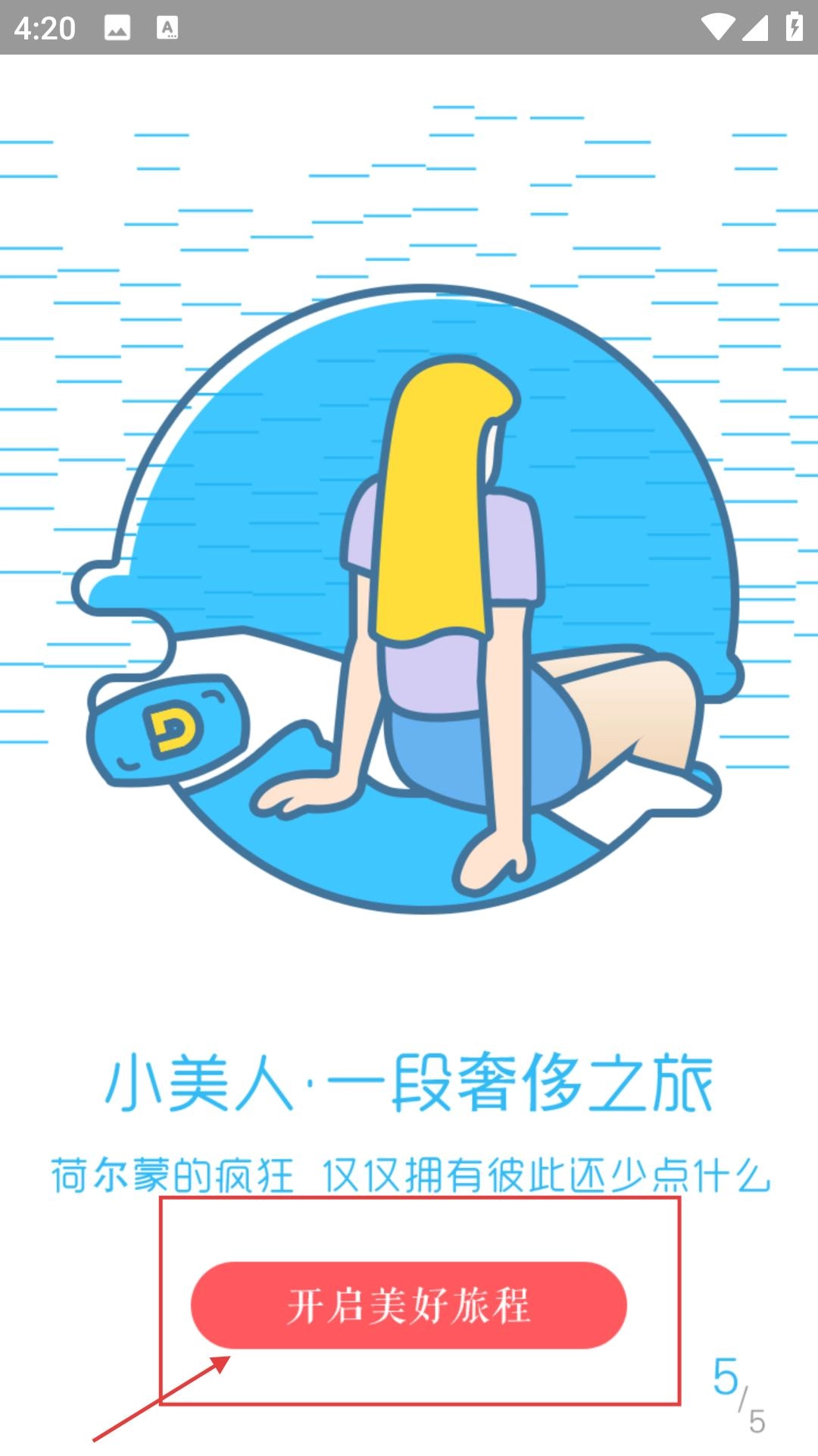 1、在启动引导页,点击【开启美好旅程】按钮,可进入“叮叮短租”主界面。
