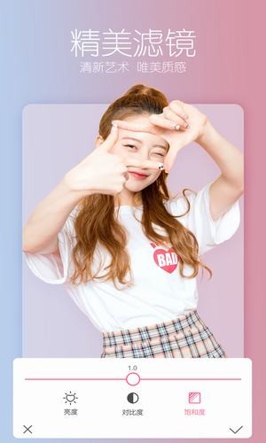 这款修图自拍神器深受美照修图网红、明星达人和众多用户的喜爱。它能让你轻松修图,还提供超多萌萌贴纸,全方位覆盖你所需的图片处理功能。通过实时脸部微调,眼鼻嘴都能呈现精心雕刻的细致效果,后期无需再额外P图。你可以自由选择功能,随意调节滤镜的亮度、对比度和饱和度,让照片的每个元素都变得优质出众。