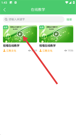 3、在【在线教学】页面,选择想要学习的【视唱在线教学】视频,点击进入视频详情页。