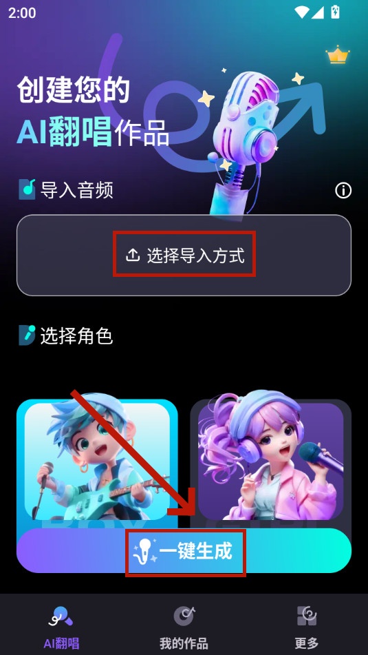 进入相应界面后,先挑选合适的音频导入方式来添加素材,接着选定对应的角色,最后