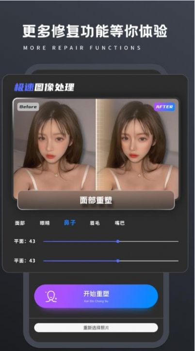 随手拍张照片,就能一键变身漫画世界里的人物,还有超多美妆造型可选,为照片增添别样色彩,让你轻松拥有独特风格。不管旧照片损坏得多严重,它都能帮你轻松修复;就算是黑白发黄的老照片,也能复原出当年的美貌,让你重温照片里的动人风姿。