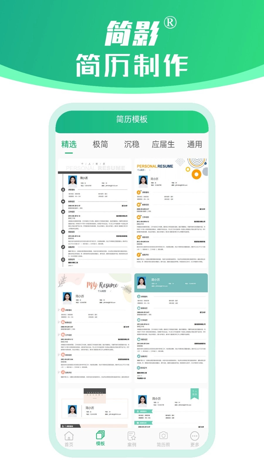 1、简影简历制作的界面设计简洁大方,操作流畅,用户可以轻松上手,快速完成简历制作。