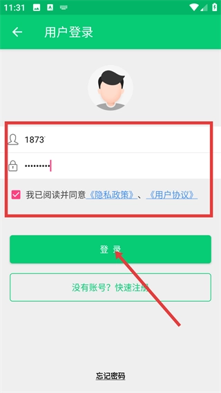 4、进入用户登录页面后,需填写【账号】与【密码】,并勾选同意《隐私政策》和《用户协议》,随后点击【登录】按钮,即可完成账号登录流程。